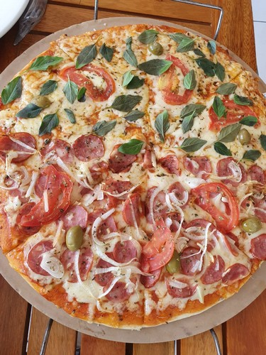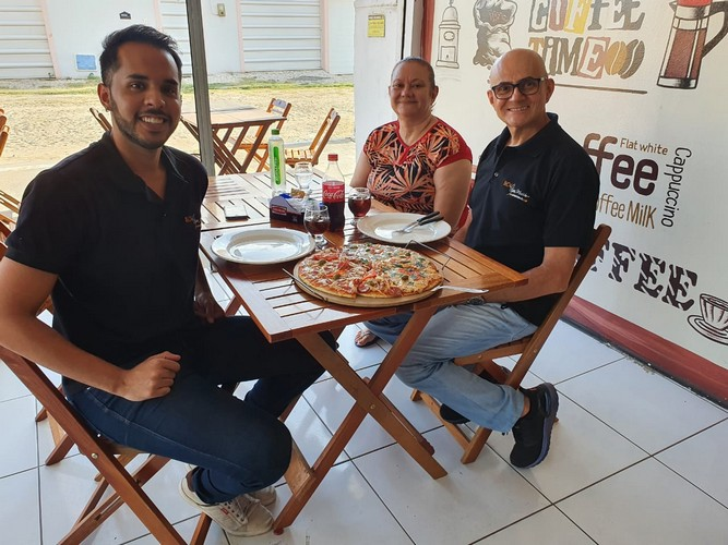 Estive com a minha equipe no Donatella Pães e Doces saboreando a minha pizza preferida marguerita. Encontrei o meu nobre amigo Fábio Nascimento e essa dedicada equipe da D& R Distribuidora na entrega dos produtos coca-cola.