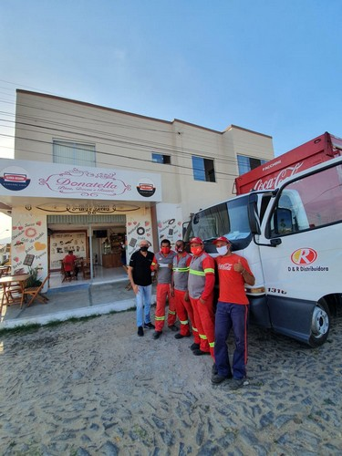 Estive com a minha equipe no Donatella Pães e Doces saboreando a minha pizza preferida marguerita. Encontrei o meu nobre amigo Fábio Nascimento e essa dedicada equipe da D& R Distribuidora na entrega dos produtos coca-cola.