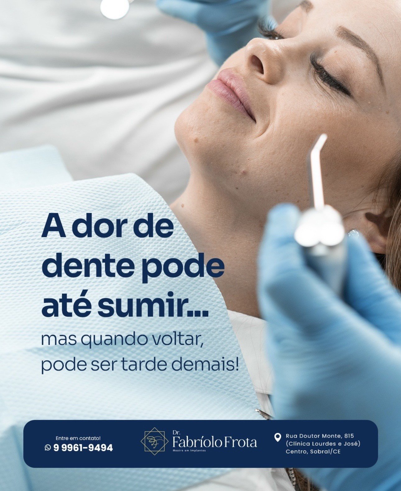 Não adie, só vai piorar ! A dor é o jeito que o corpo encontra de avisar que algo não está bem se você sentiu dor de dente não espere passar para procurar o dentista.