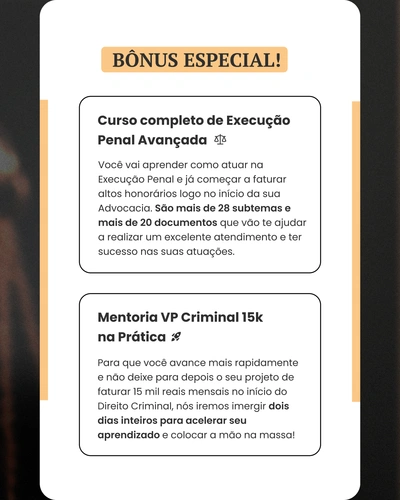 Não perca a chance de iniciar a sua jornada no Direito Criminal e ser reconhecida como uma Advogada Leoa que fatura altos honorários e é reconhecida por onde passa!
