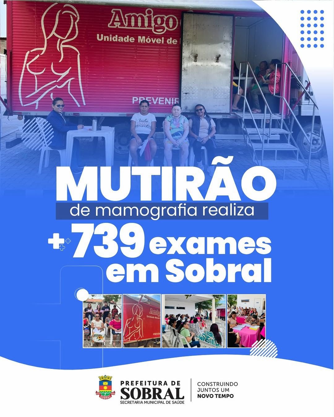 Entre os dias 24 de junho e 4 de julho, realizamos 739 mamografias com o Caminhão Amigo do Peito, levando prevenção e diagnóstico para a sede e os distritos.