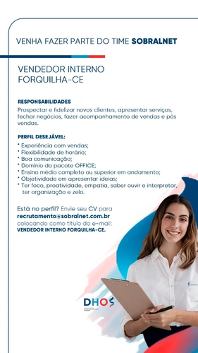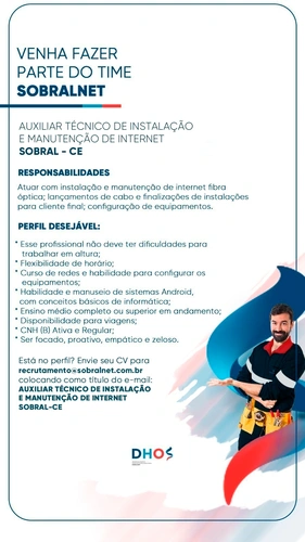 Atenção para as oportunidades de vagas de emprego disponíveis na SobralNet! Faça partedo nosso Time!