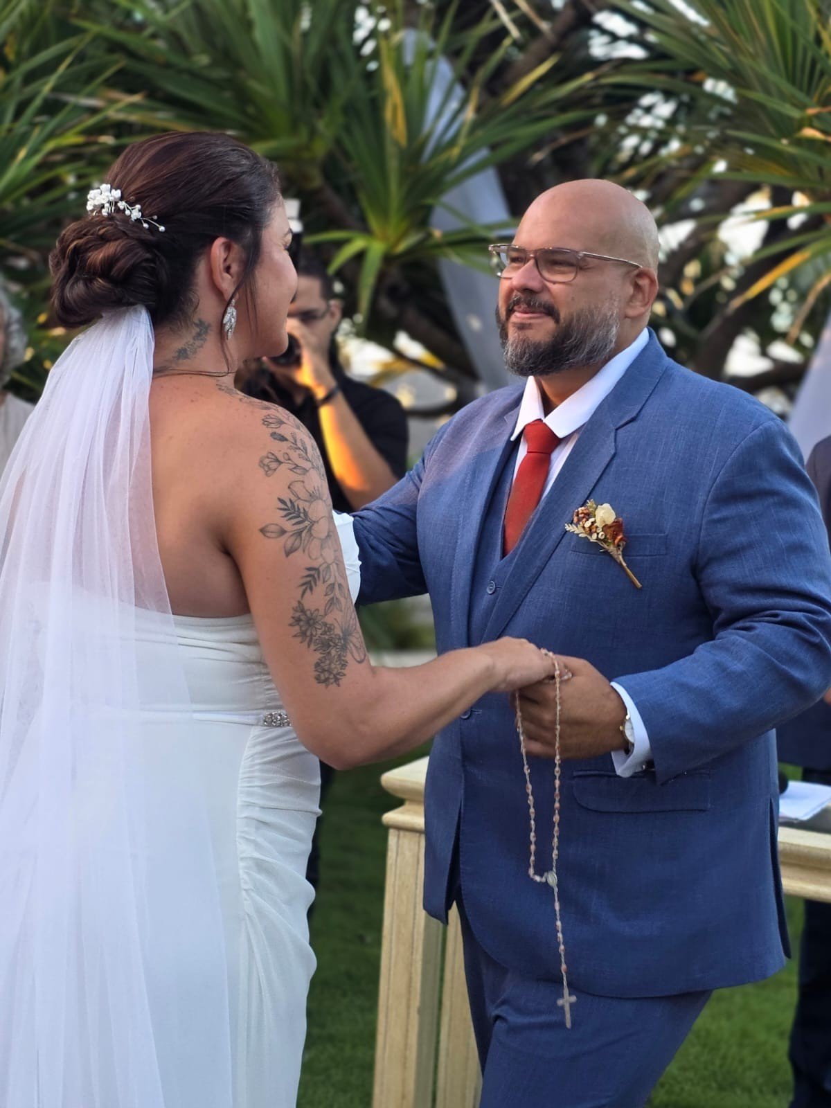 A Família Arruda Coelho reuniu se no seu lindo condomínio na Praia da Tabuba para o casamento de Helô e Bruno, filho de Ana e José Maria Arruda Coelho Filho.