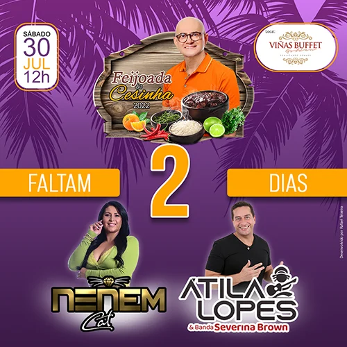 Faltam 2 dias para a famosa Feijoada do Cesinha 2022! Não fique de fora! Adquira já a sua camisa no Loja Unni Shop no Sobral Shopping!