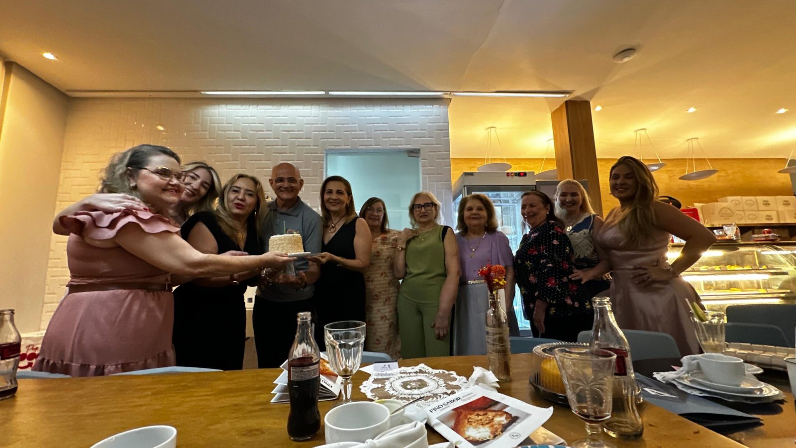 A ocasião também contou com um momento especial para celebrar o aniversário de Cesar Macedo , que recebeu os parabéns dos presentes e comemorou com um delicioso Café com Pietá no acolhedor Fino Sabor.