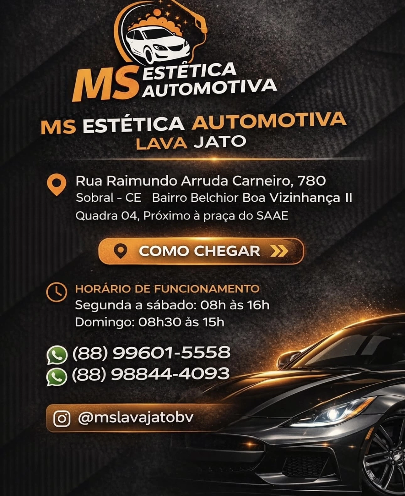 Venha conhecer o melhor lava jato da cidade de Sobral, veja como chegar na Ms Estetica Automotiva