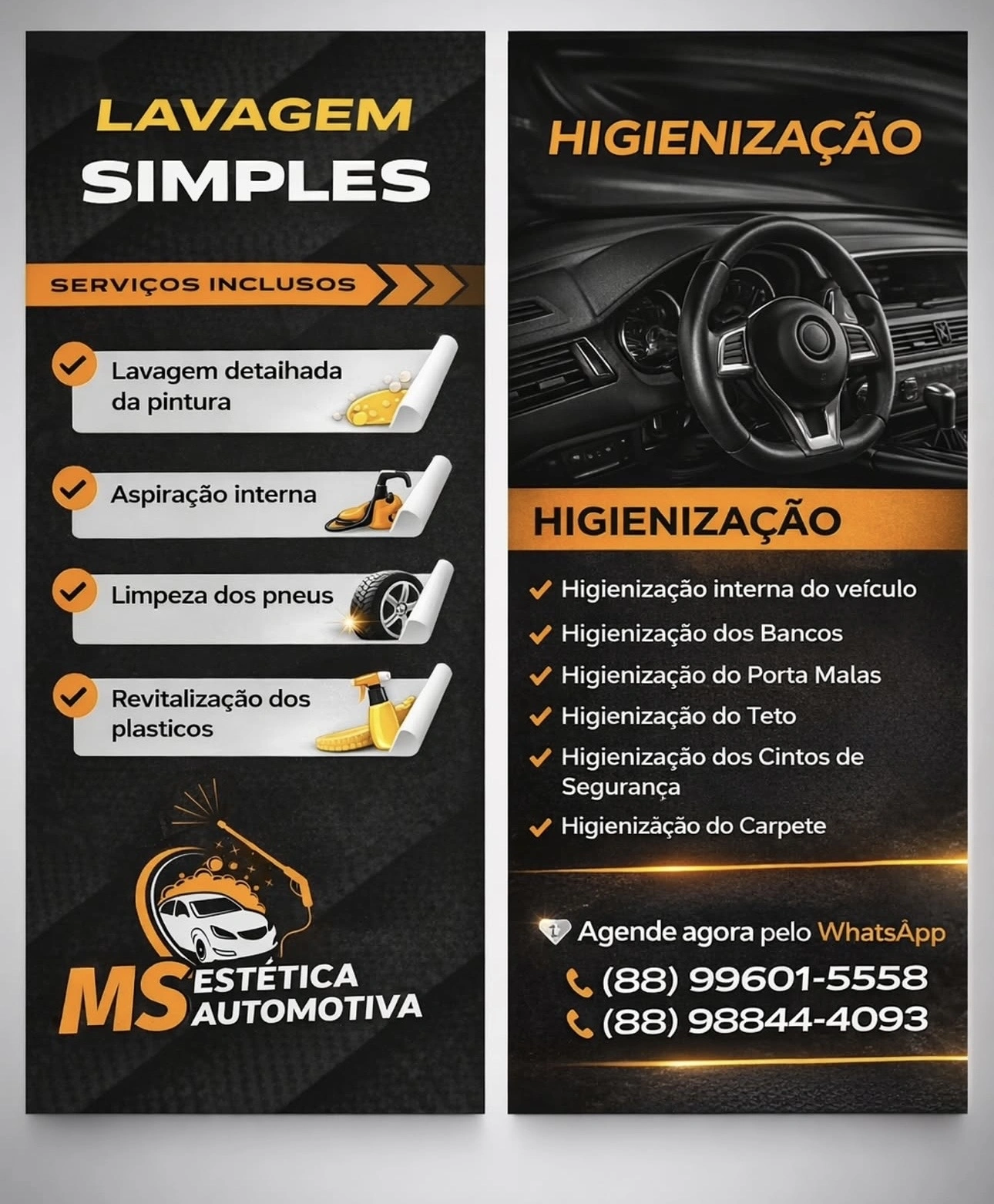Venha conhecer os serviços de higienização completa e lavagem simples da MS Estética Automotiva. Aqui, seu veículo ganha aquele trato especial, com qualidade, capricho e resultado que você vê na hora!
