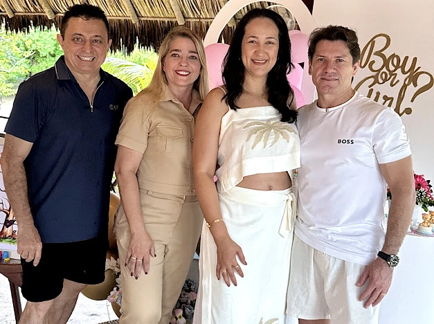 Em um momento marcado por alegria e emoção, aconteceu o chá revelação de Karisa Marques e Gilson Fontenele, realizado na casa de praia dos empresários Leila Vinas e Miguel Vinas, na Praia do Preá.