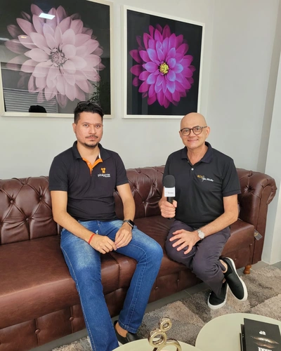 Foto com o entrevistado Weglas Barbosa e o Gestor Comercial Robson Arruda.