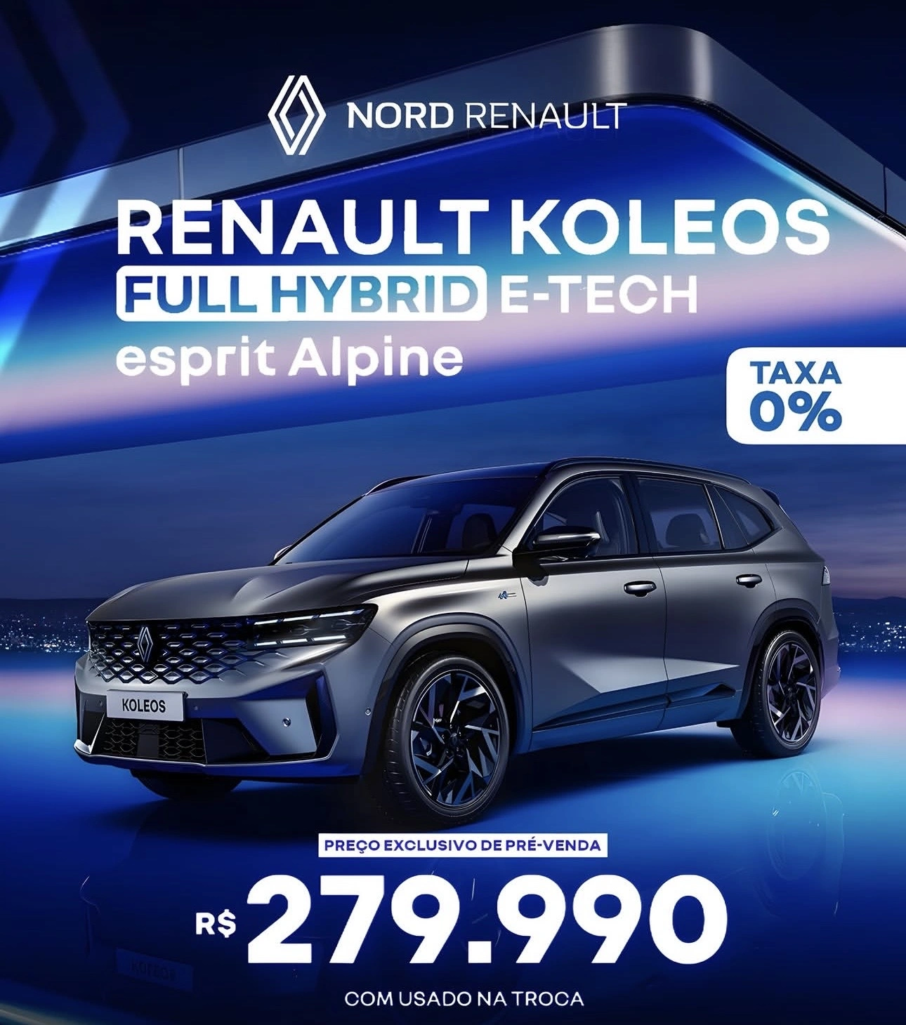 A pré-venda do Renault Koleos está oficialmente aberta! Garanta agora a sua unidade do SUV que une design europeu, tecnologia de ponta e conforto premium.