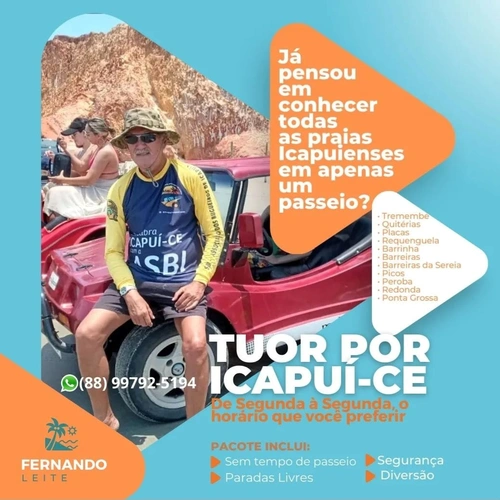 Se estiverem passando por Tremembé (Icapuí-CE), não deixem de fazer um passeio de buggy com Seu Fernando, que irá apresentar as belezas das praias do Ceará e do Rio Grande do Norte.
