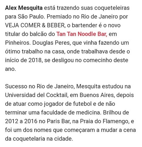 Alex Mesquita o Bartender mais famoso do Brasil foi contratado para um famosa casa em São Paulo.