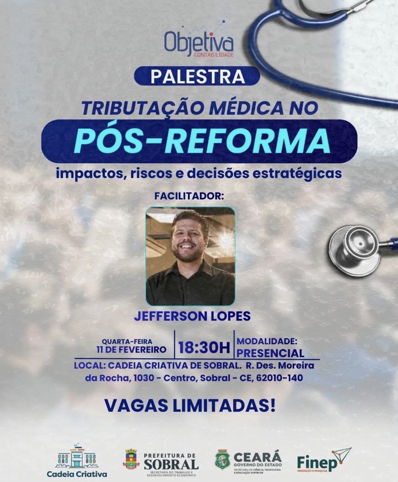 “Tributação médica no pós-reforma: impactos, riscos e decisões estratégicas”, na Cadeia Criativa de Sobral.