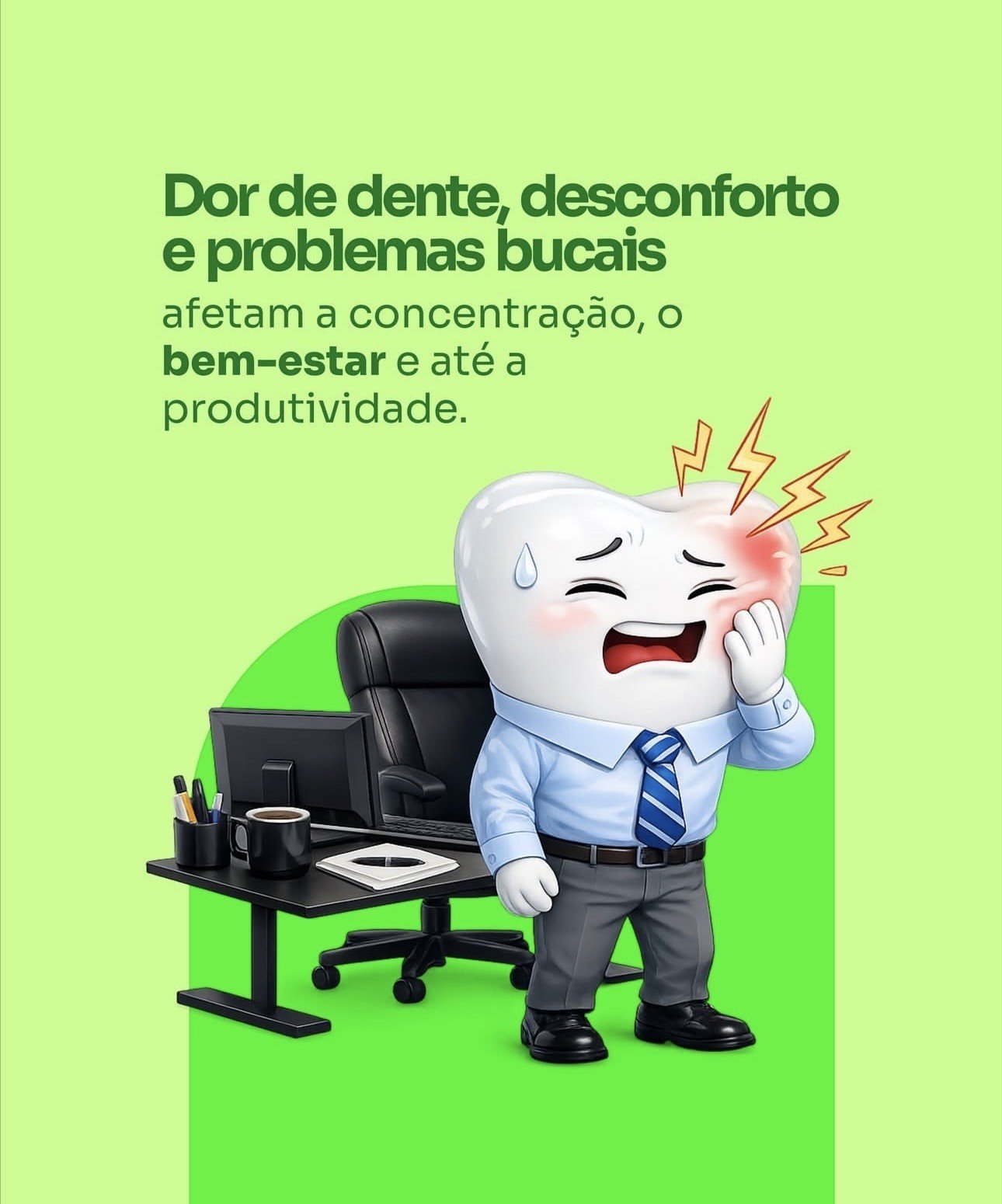 O dentinho já percebeu: cuidar do sorriso também é cuidar do ambiente de trabalho, Problemas bucais não afetam só a saúde eles impactam o bem estar, a concentração e até a produtividade do dia a dia.
