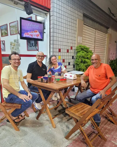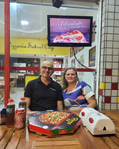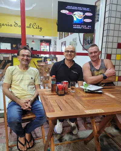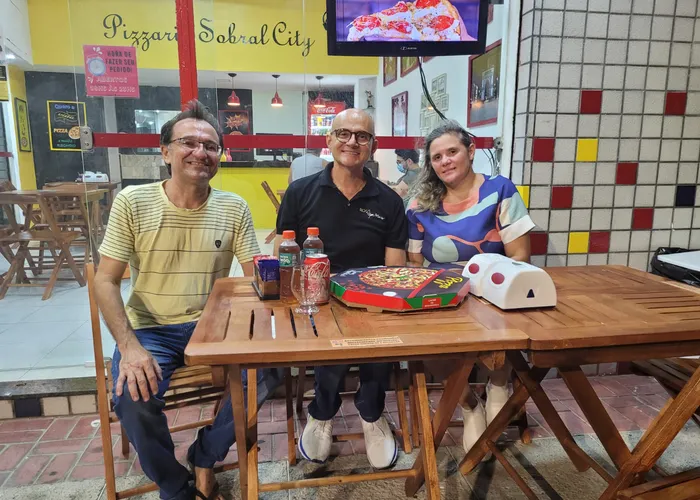 Tive o prazer de conhecer pessoalmente os proprietários da Pizzaria Sobral City, o casal de empresários Leoneide Couto e Xerez Pontes. Também tive o prazer de prestigiar o passo a passo do preparo de uma maravilhosa e saborosa pizza, a minha favorita: sabor marguerita! Um espetáculo de pizza! Na ocasião também encontrei o famoso Lulu, proprietário do Bar do Lulu e o empresário Jackson.