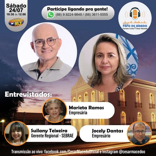 Fique ligado neste sábado (24), o nosso famoso Programa Papo de Sábado! Coqueiros FM 95,3