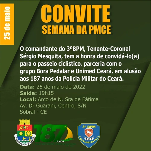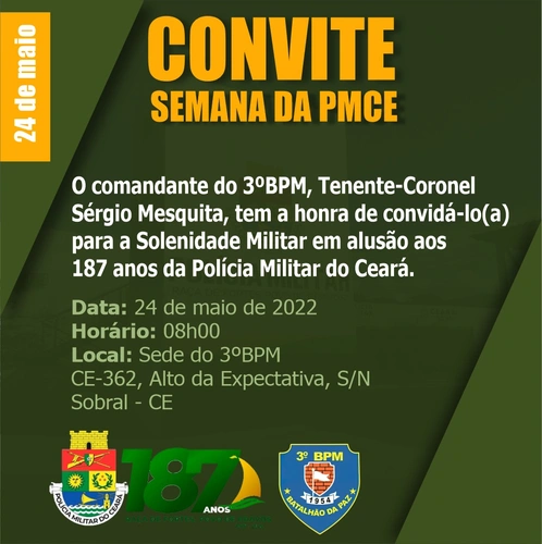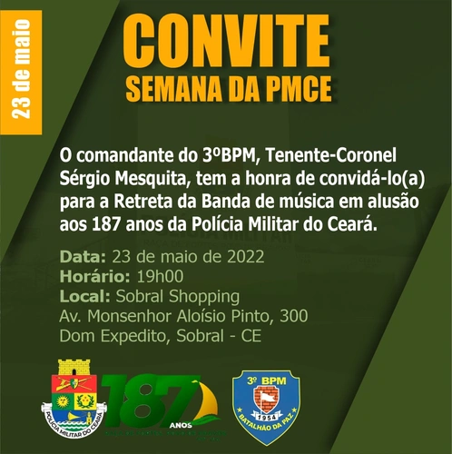 Nessa segunda-feira começa a programação das comemoração dos 187 anos da BPM. Com a organização do Coronel Sérgio Mesquita que Comando o 3* BPM. Estarei presente com minha equipe do blog Cesarmacedo.com para registrar esse importante evento.