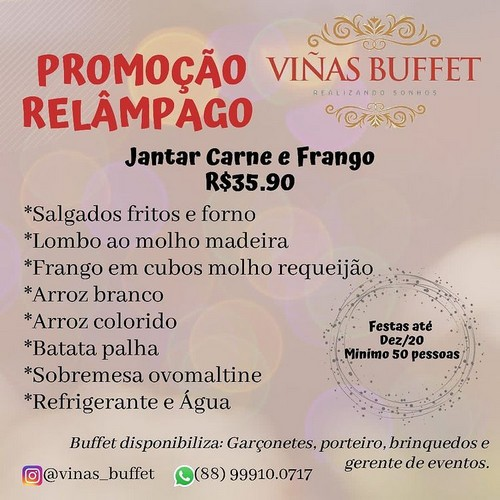 Uma boa oportunidade pra você aproveitar e realizar seu evento com a Promoção Relâmpago, a última promoção do ano no Viñas Buffet.