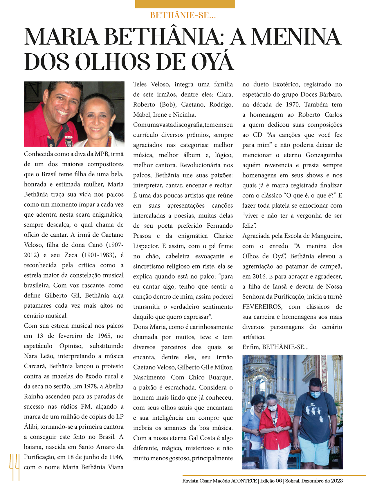 Confira a página com Alexandre Marinho e Maria Bethânia, na nossa 6ª Edição da Revista César Macêdo Acontece.