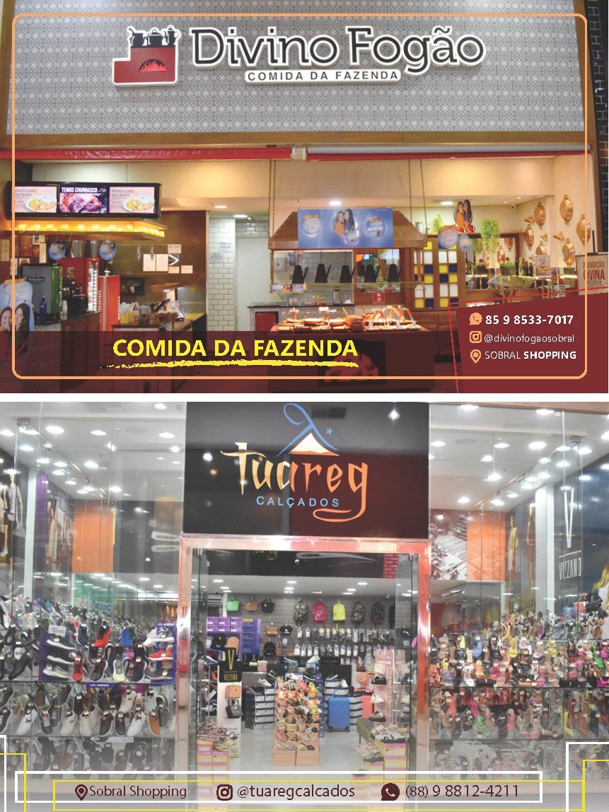 (Diagramação: por Felipe Mendes) Confira a página das conceituadas empresas Divino Fogão e Tuareg Calçados, nesta 5ª edição da Revista César Macêdo Acontece.