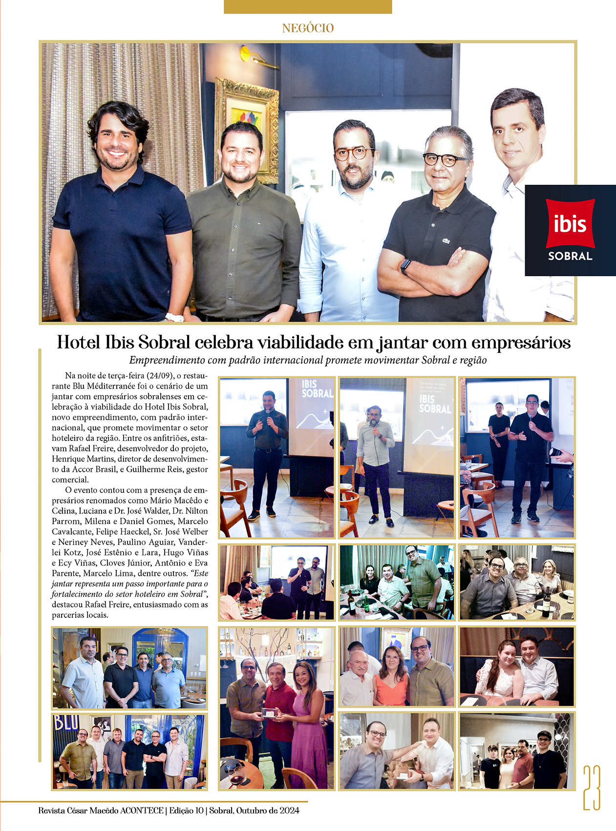 Confira a página do Ibis Sobral, na nossa 10ª Edição da Revista César Macêdo Acontece.