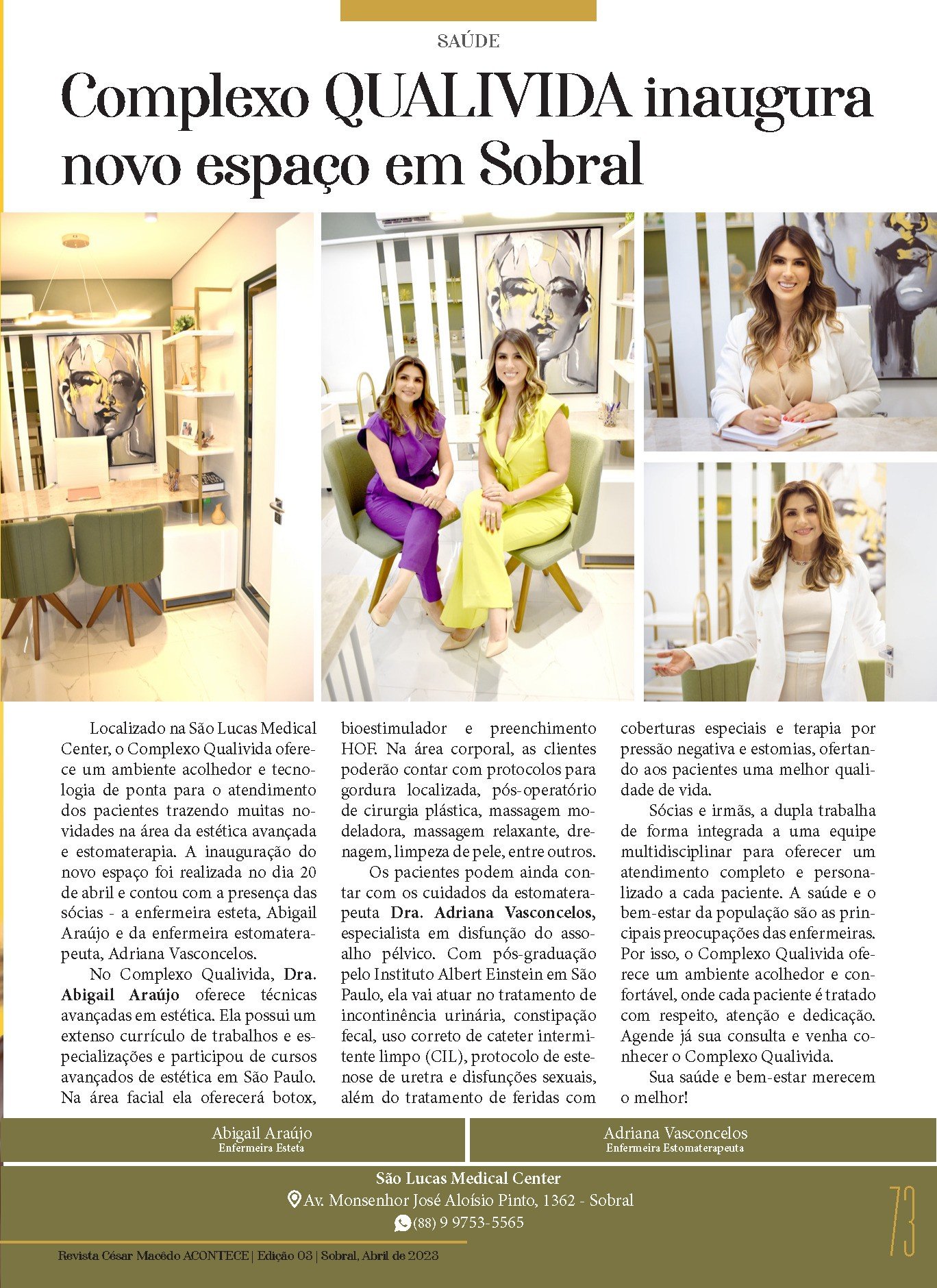Confira a página do Complexo Qualivida, na nossa mais nova edição da Revista César Macêdo Acontece.