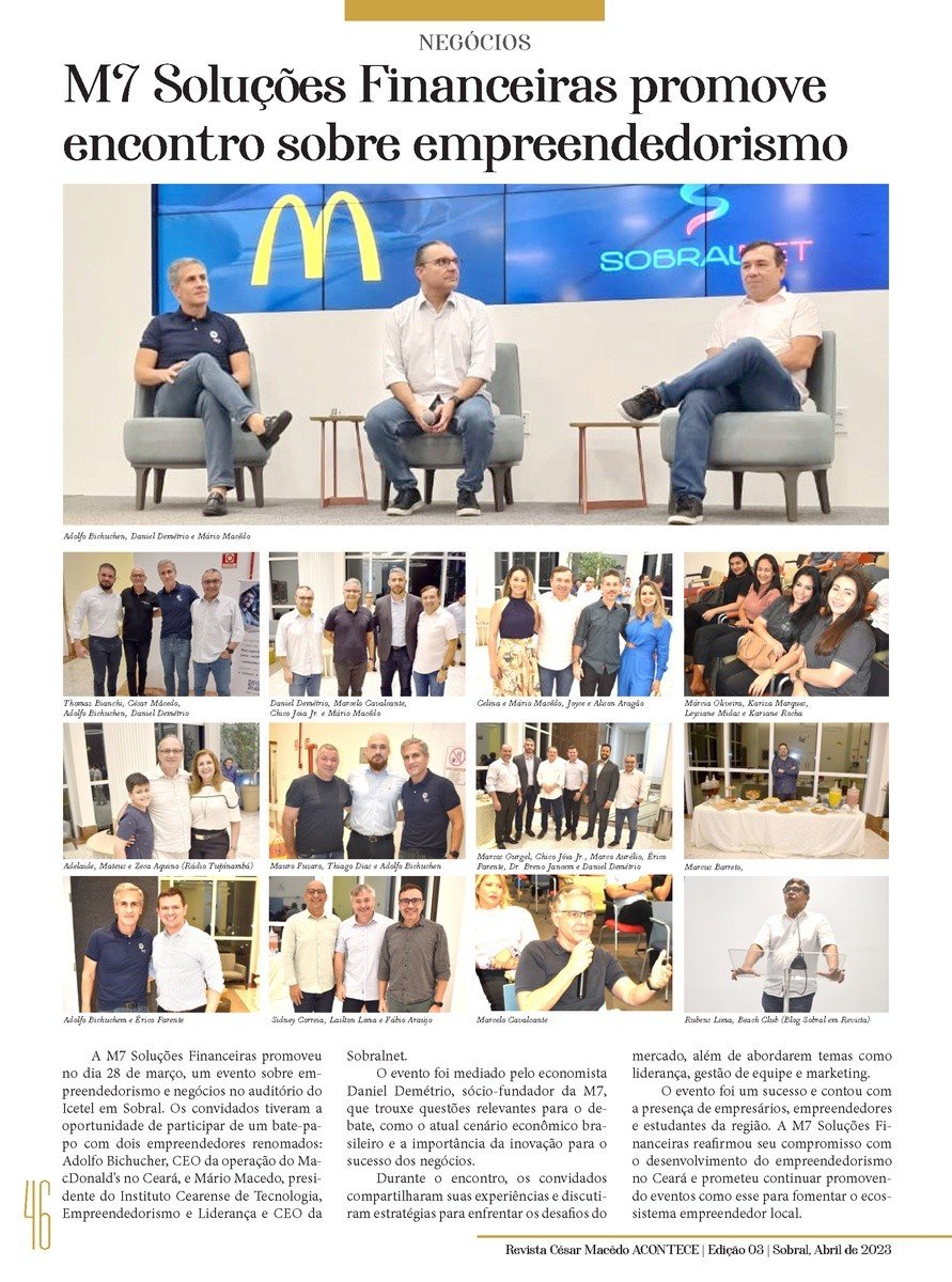 Confira a página da conceituada M7 Soluções Financeiras, na nossa mais nova edição da Revista César Macêdo Acontece.