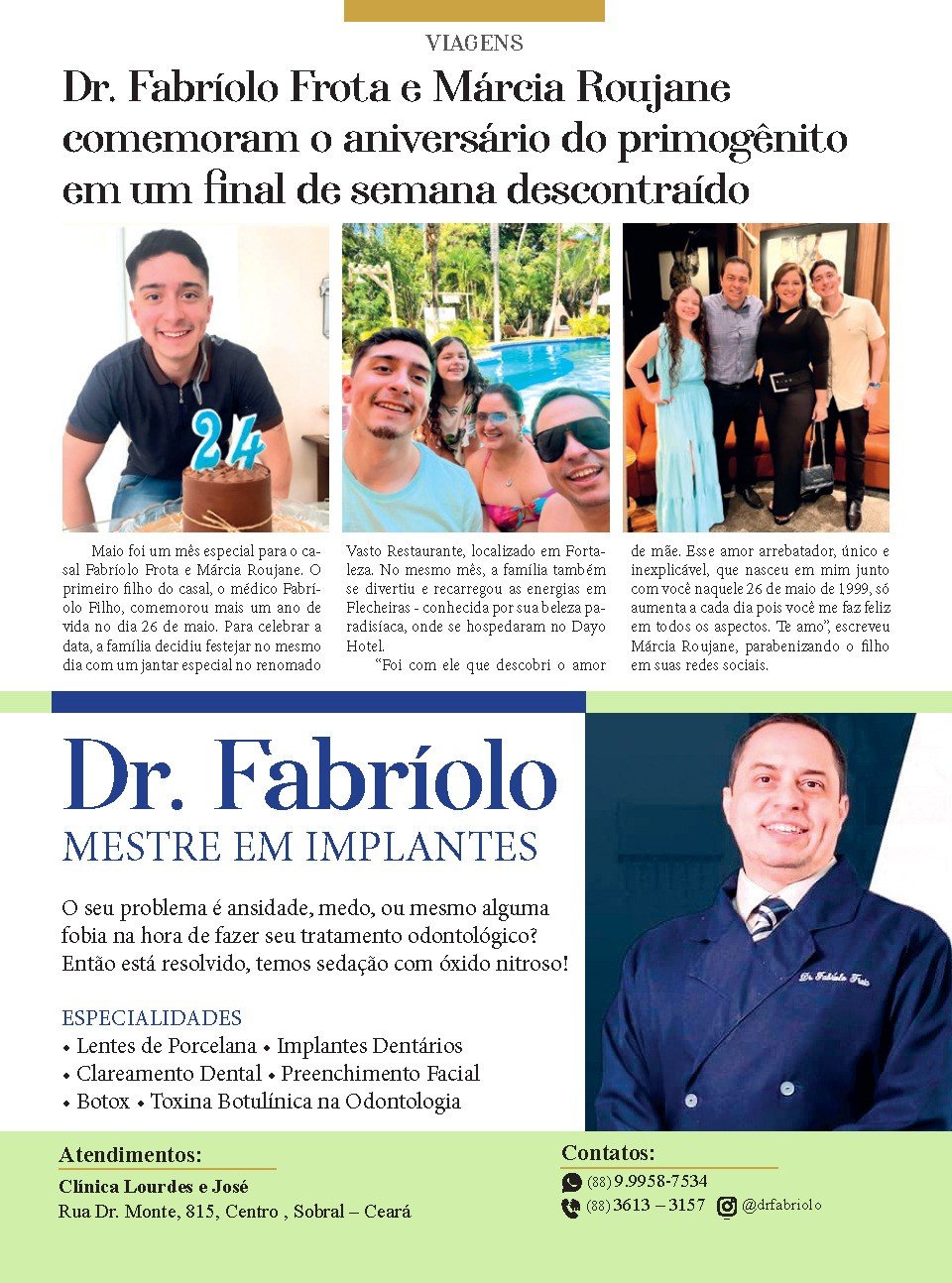Confira a página do implanotodontista Dr. Fabríolo Frota, na nossa mais nova edição da Revista César Macêdo Acontece.