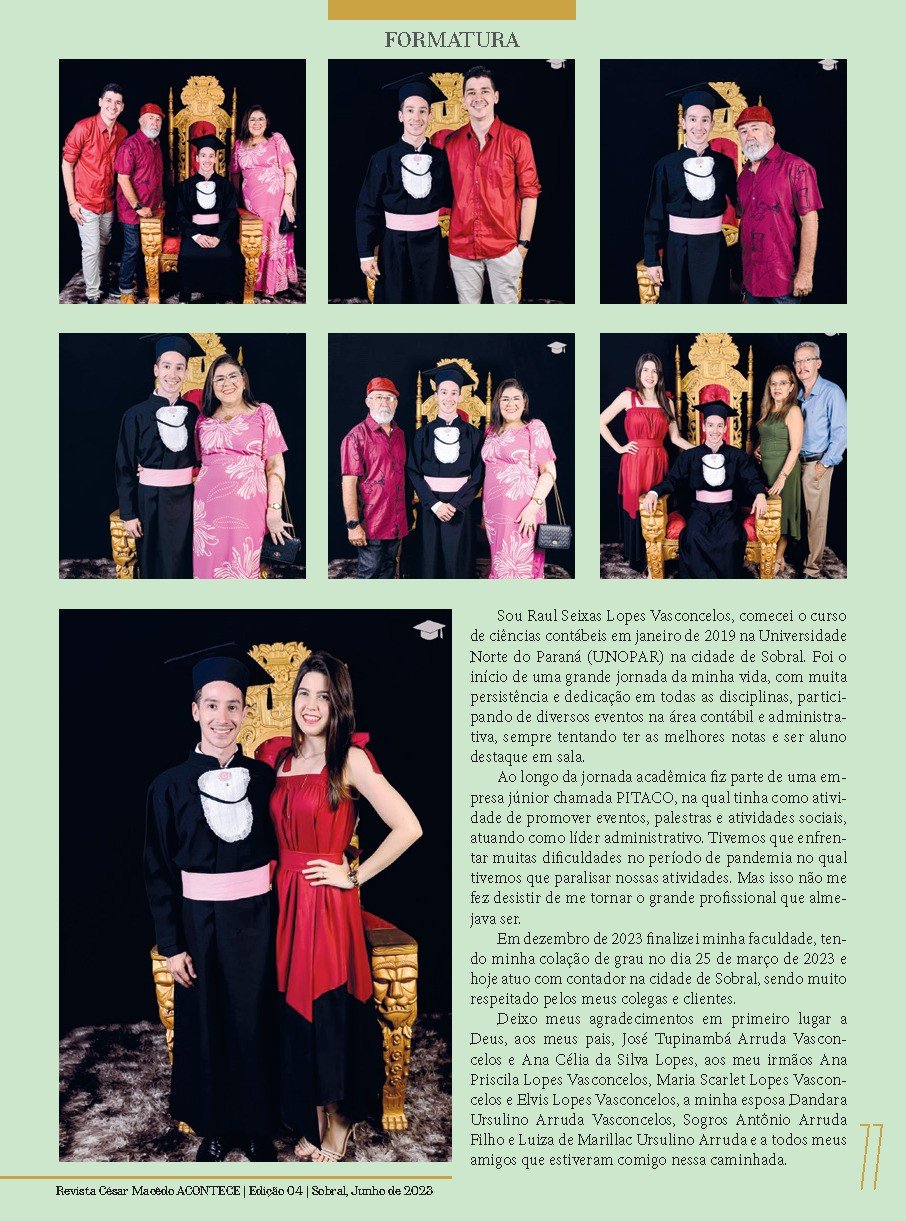 Confira a página da formatura de Raul Seixas Lopes Vasconcelos, na nossa mais nova edição da Revista César Macêdo Acontece.