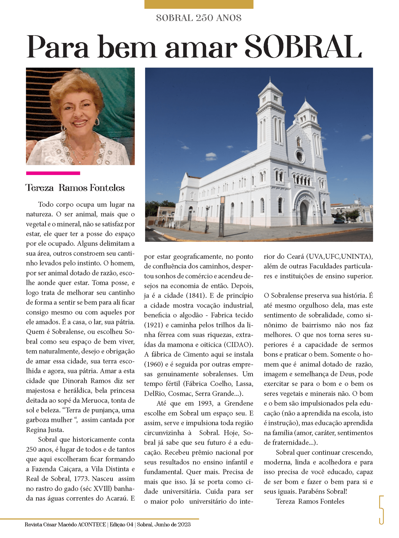 Confira a página Revista César Macêdo Acontece, Edição 4: Sobral 250 Anos, com a mensagem de Tereza Ramos Fonteles, na nossa mais nova edição da Revista César Macêdo Acontece.