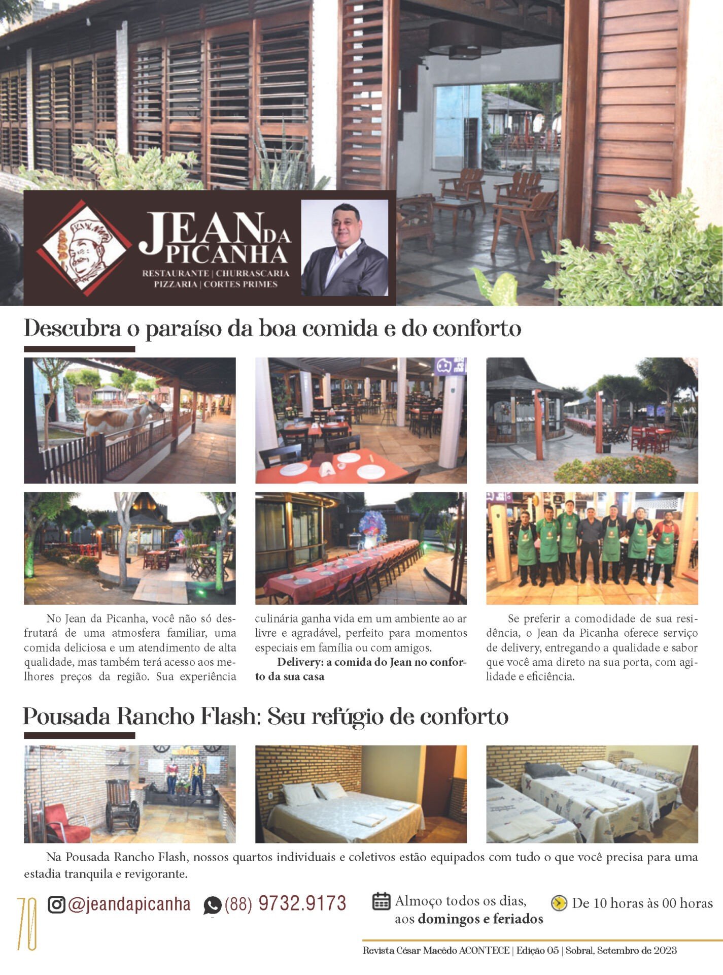 Confira as páginas do restaurante Jean da Picanha, assinada por Júlio Macêdo, na nossa mais nova edição da Revista César Macêdo Acontece.