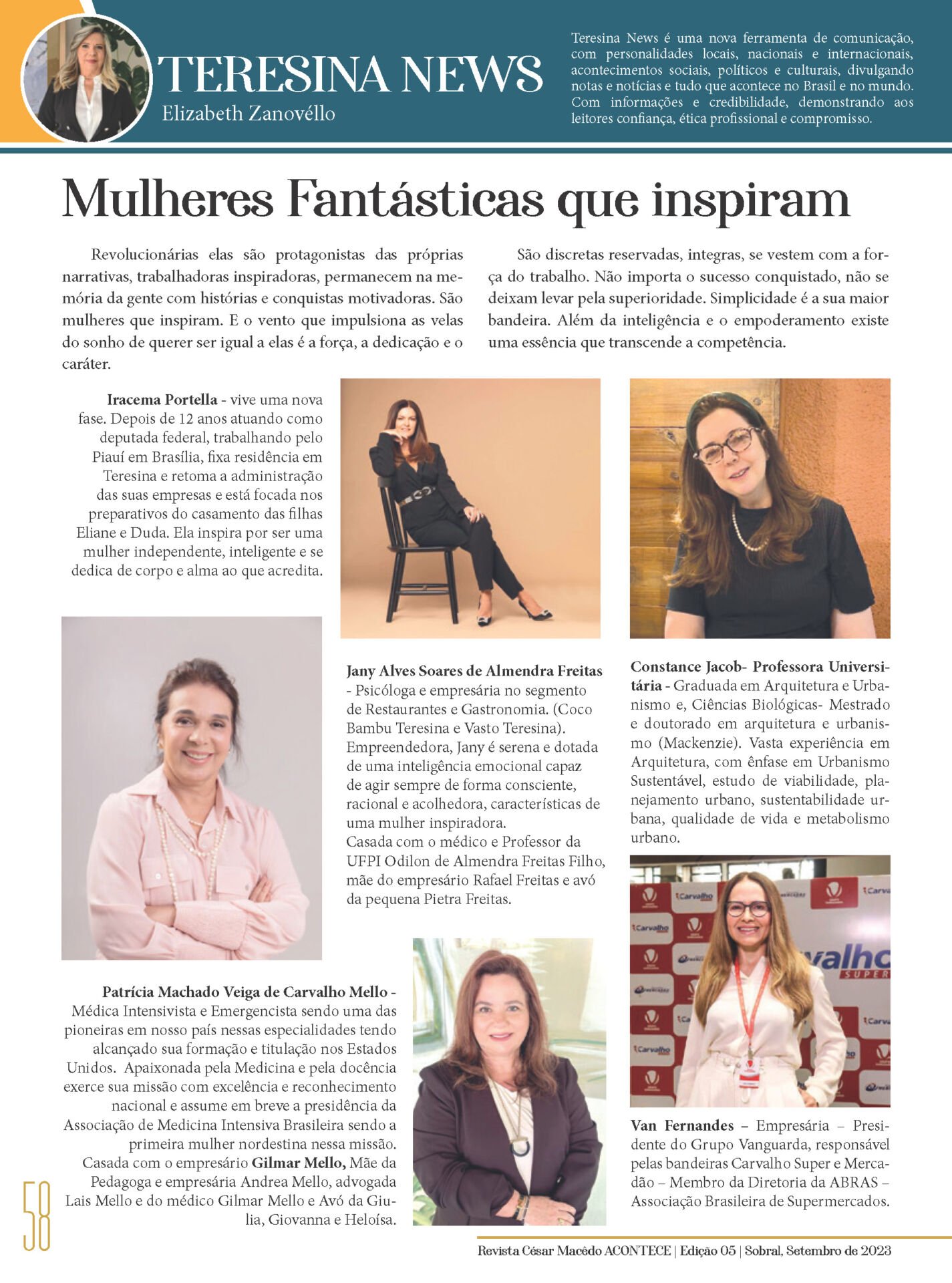 Confira as páginas da coluna Teresina News com Elizabeth Zanovello, na nossa mais nova edição da Revista César Macêdo Acontece.