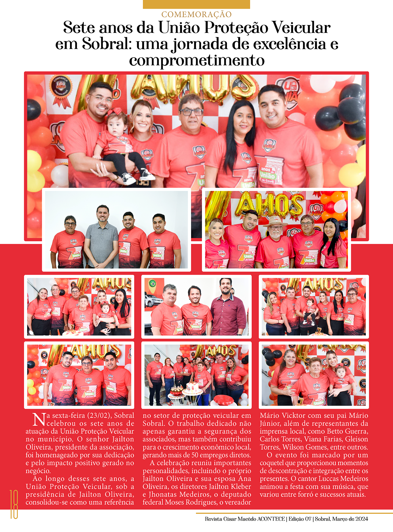 Confira as páginas dos 7 Anos União Proteção Veicular, na nossa 7ª Edição da Revista César Macêdo Acontece.