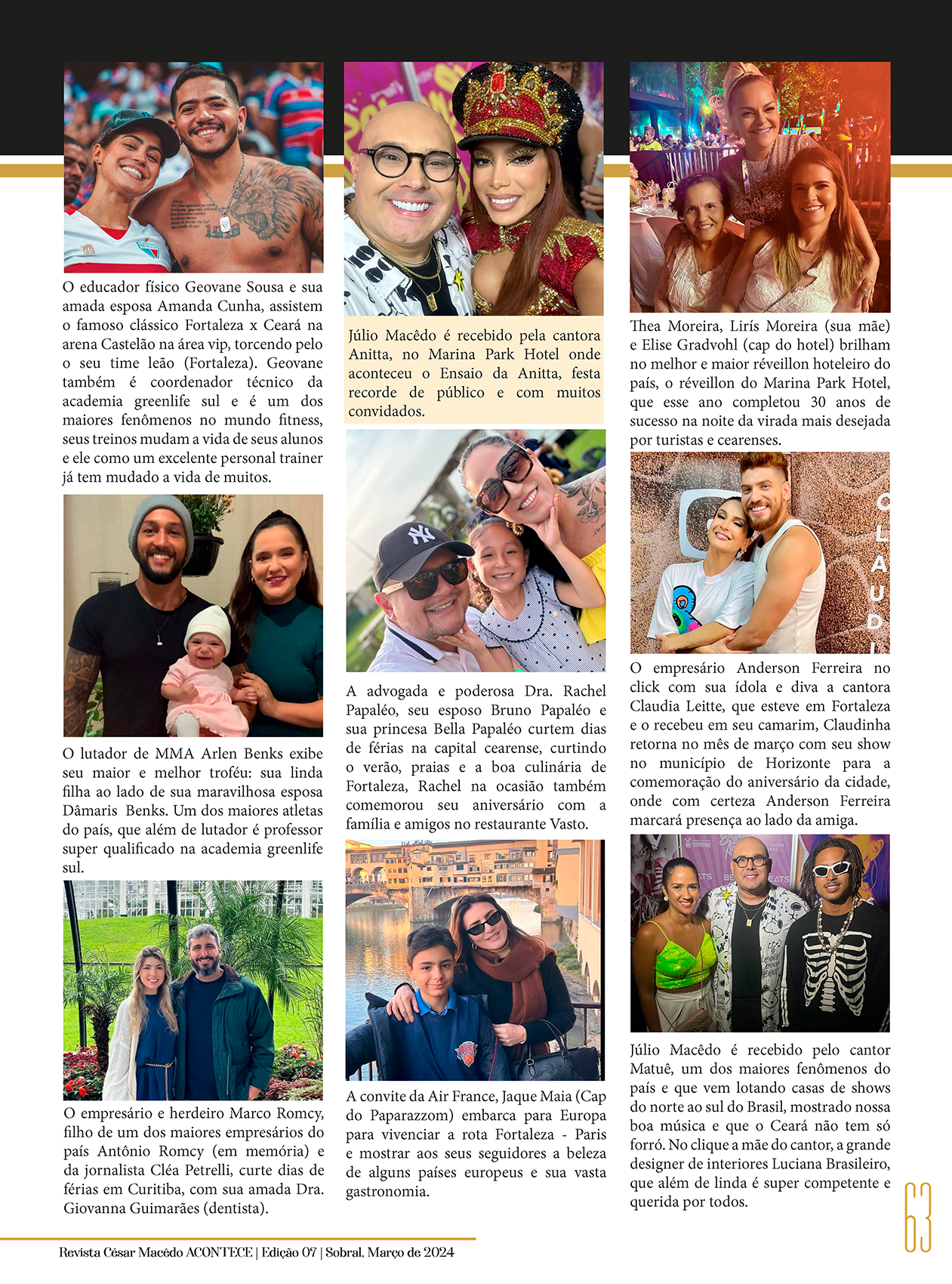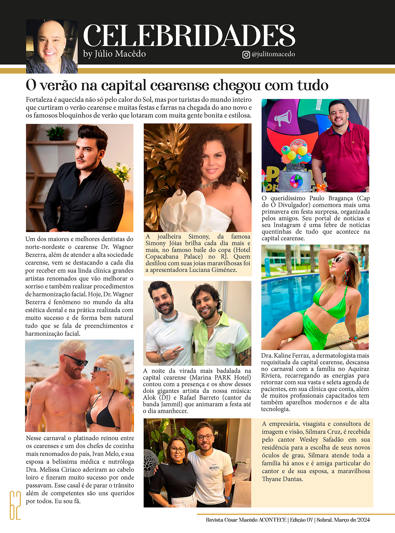 Confira as páginas da coluna Celebridades, by Júlio Macêdo, por Elizabeth Zanovéllo, na nossa 7ª Edição da Revista César Macêdo Acontece.