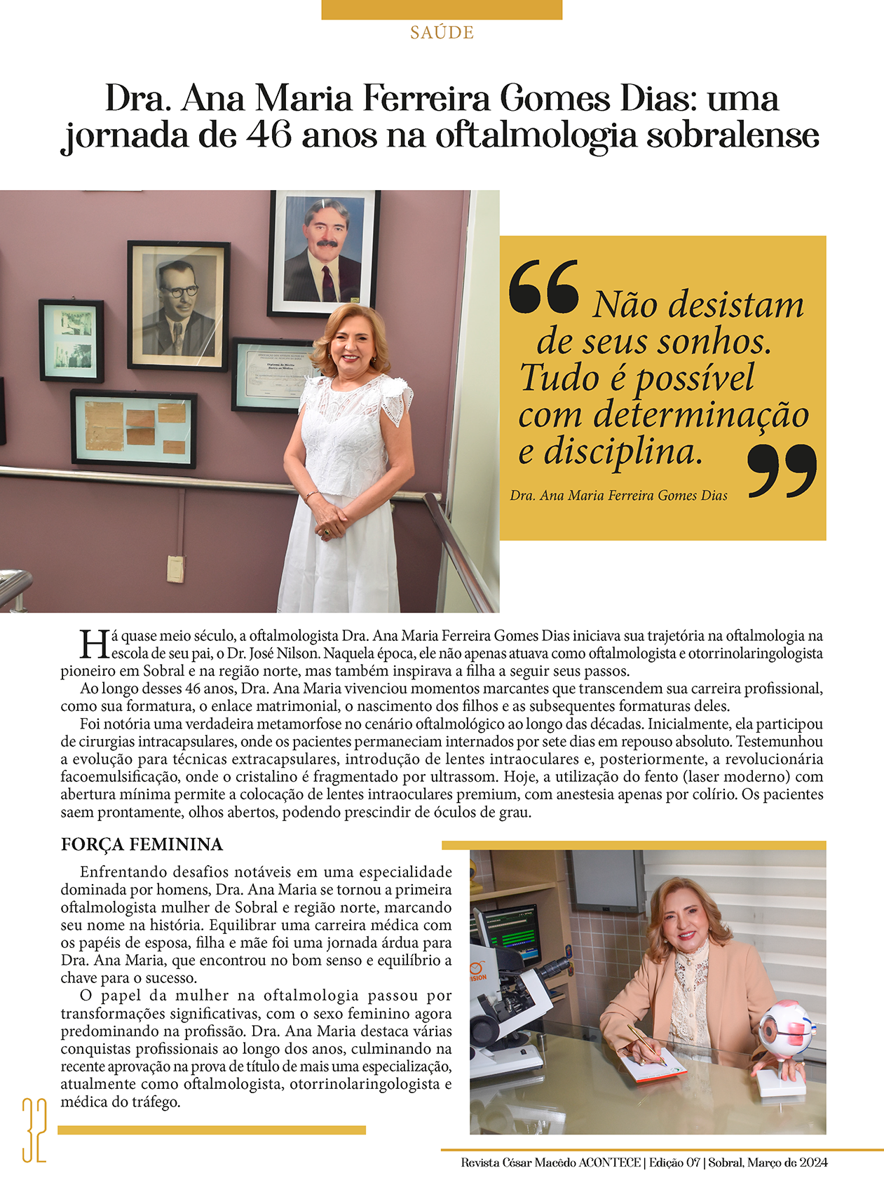 Confira a página da Dra. Ana Maria Ferreira Gomes, na nossa 7ª Edição da Revista César Macêdo Acontece.