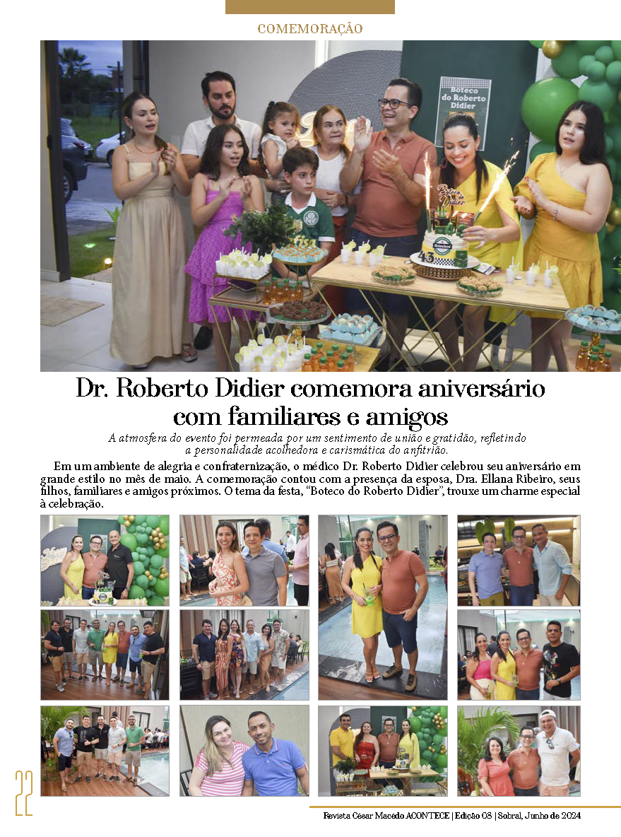Confira a página do Aniversário do Dr. Roberto Didier, na nossa 8ª Edição da Revista César Macêdo Acontece.