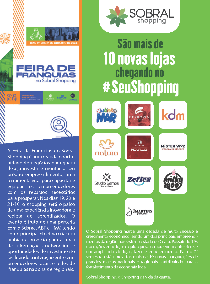 Confira a página do Sobral Shopping com a Feira de Franquias, na nossa mais nova edição da Revista César Macêdo Acontece.