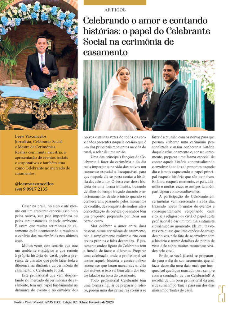 Confira a matéria do celebrante social, Leew Vasconcelos, na nossa nova edição da Revista César Macêdo Acontece.