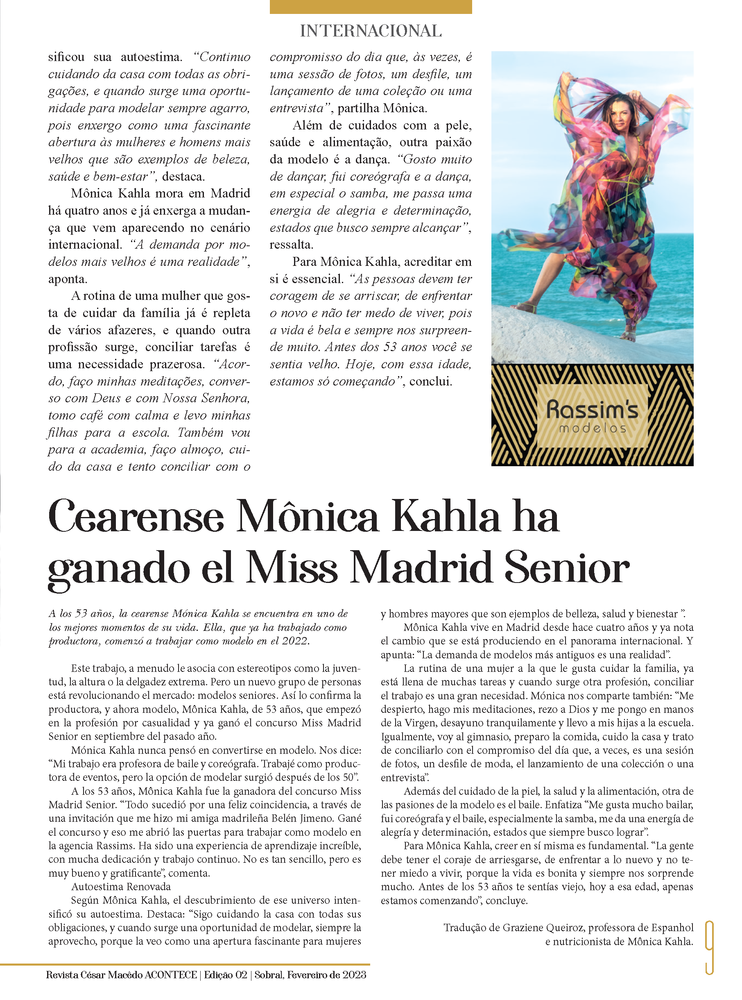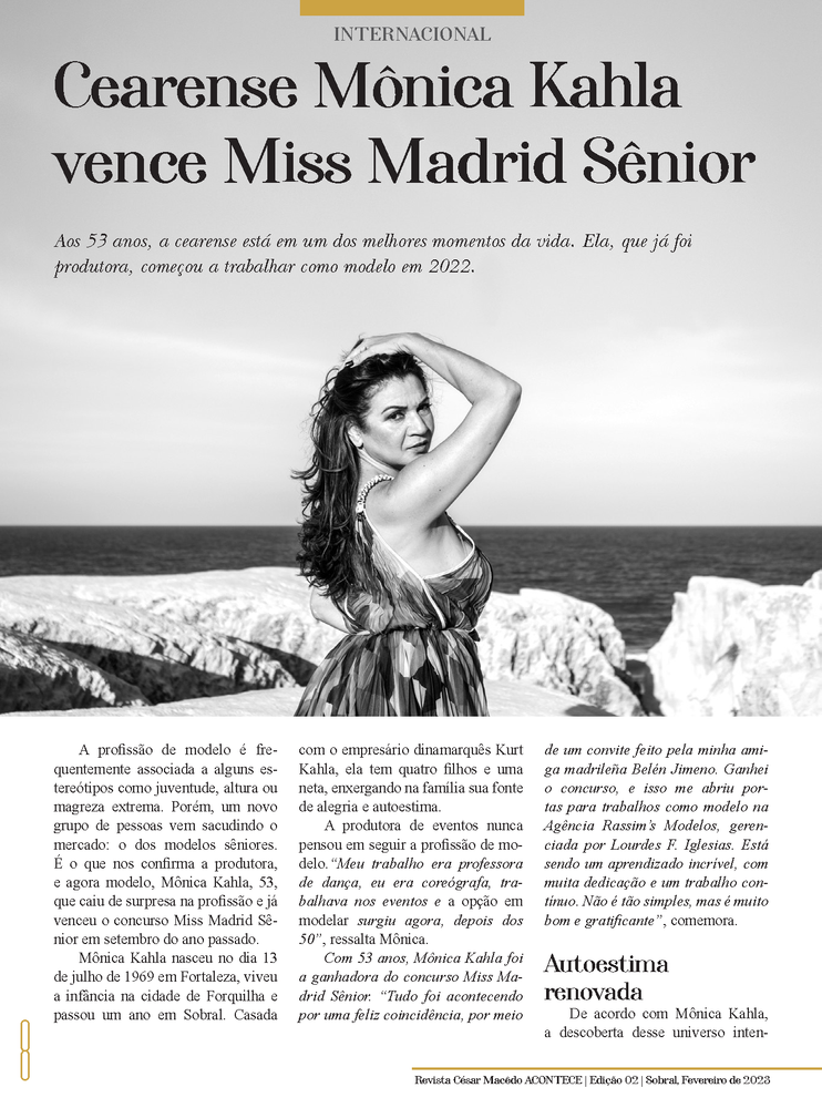 Confira a página da Miss Madrid Sênior Mônica Kahla.