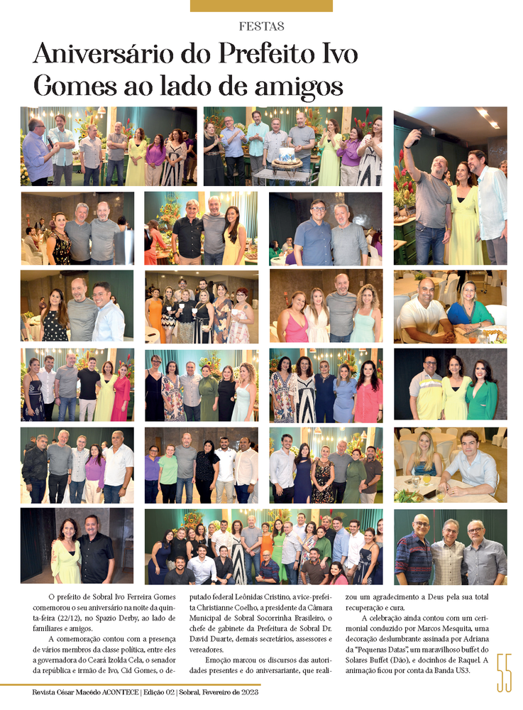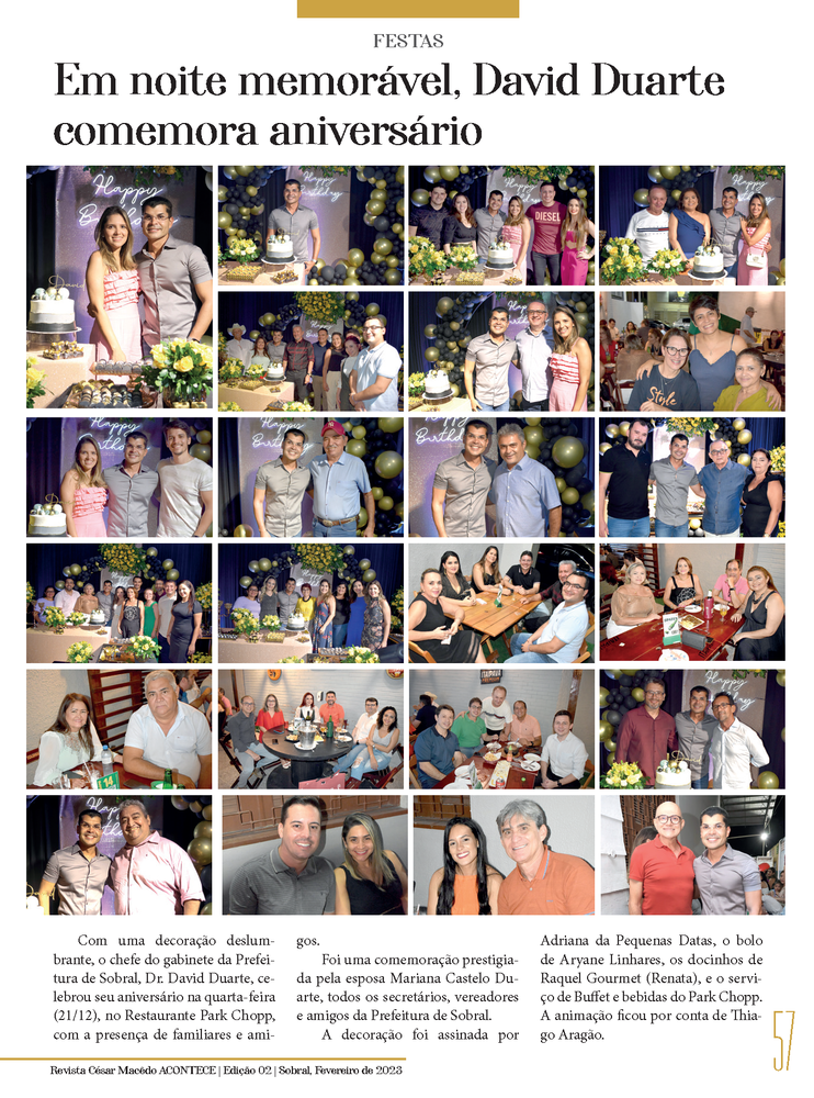 Confira a página “Festas”, com os Aniversários do prefeito de Sobral Ivo Gomes e do seu chefe de gabinete Dr. David Duarte, na nossa nova edição da Revista César Macêdo Acontece.