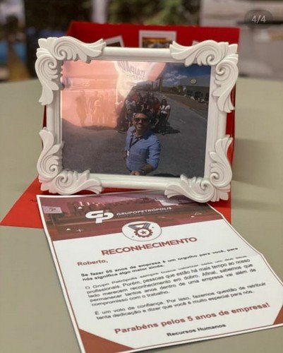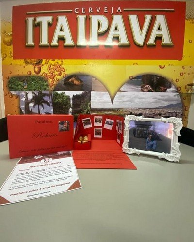 O gerente comercial Roberto Filho do Grupo Petrópolis Sobral (Itaipava), recebeu presente com lindas mensagens do grupo, parabenizando pelos seus 5 anos à frente da unidade de Sobral.