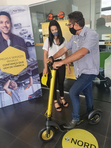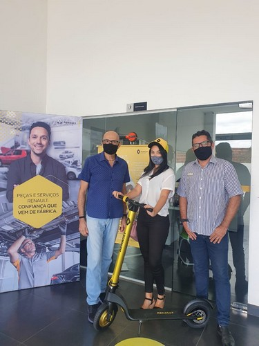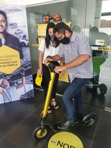 Estive com o gerente de pós vendas Alex Carneiro da Concessionária Nord Renault, realizando a entrega do prêmio um (patinete), com o sorteio realizado pela Renault do Brasil, que contemplou a nossa cliente da Nord Renault Sobral Elaine Muniz Brandão.