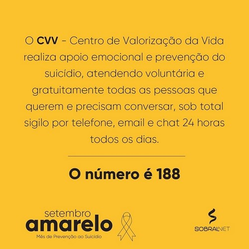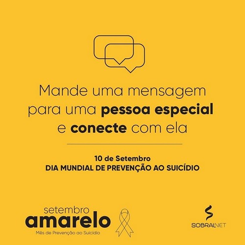 Mensagem de solidariedade e alta estima da SobralNet, pelo mês do setembro amarelo.