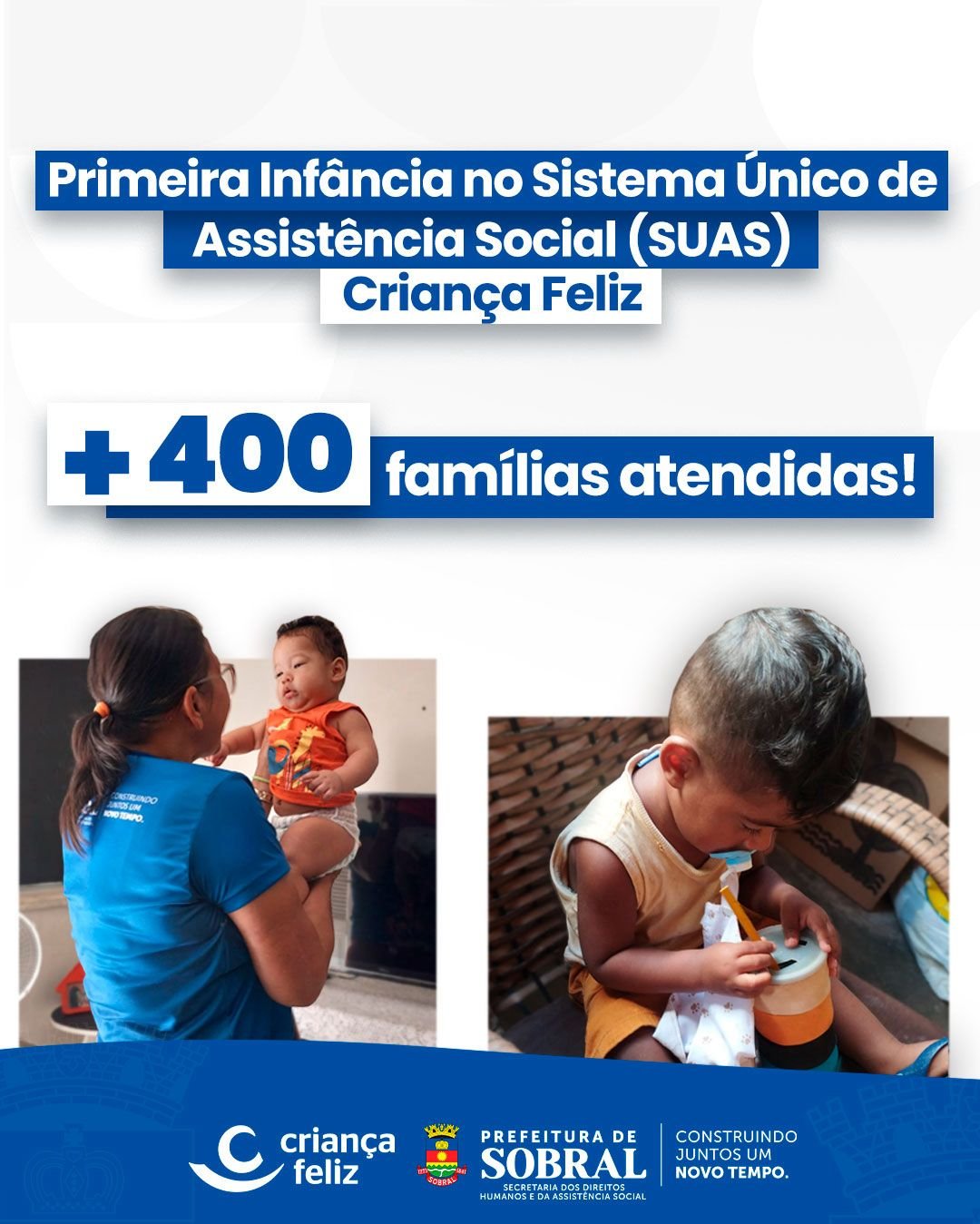Após anos de funcionamento precário e a perda do apoio estadual desde 2022, o Programa Criança Feliz foi retomado pela nova gestão municipal a partir de janeiro de 2025. Desde então, investimentos foram direcionados à ampliação das equipes e à qualificação do atendimento, visando alcançar a meta de 750 famílias beneficiadas até o final do ano.