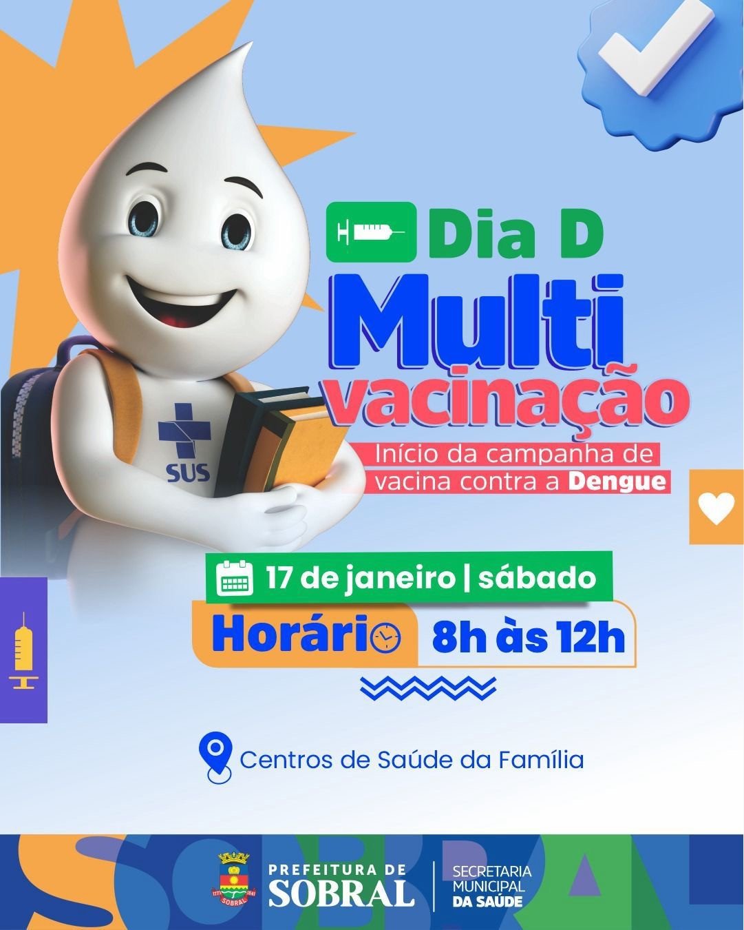 Com a intensificação das ações de enfrentamento à dengue, a Prefeitura de Sobral, por meio da Secretaria da Saúde, inicia neste sábado (17/01) a vacinação contra a doença, reforçando a proteção da população diante do início da quadra invernosa, período que historicamente favorece a proliferação do mosquito Aedes aegypti e o aumento da circulação viral.