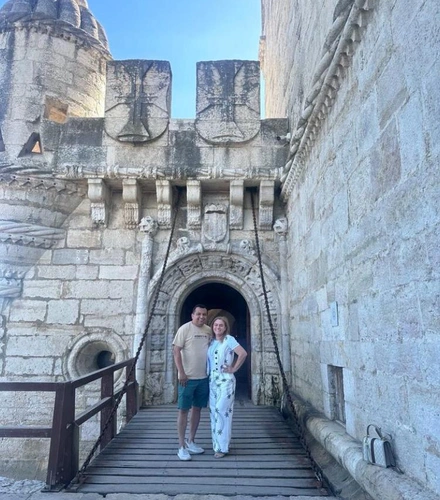 O primeiro país a visitado foi Portugal/Lisboa, fotos no monumento da Torre de Belém e nos famosos pastéis de Belém.