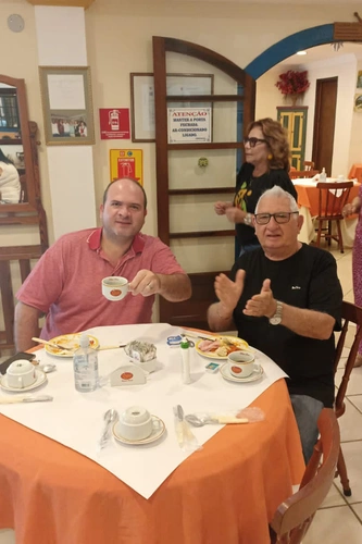 Uma coisa bem interessante, o café da manhã é com música ao vivo e todos os barzinhos e restaurantes.
