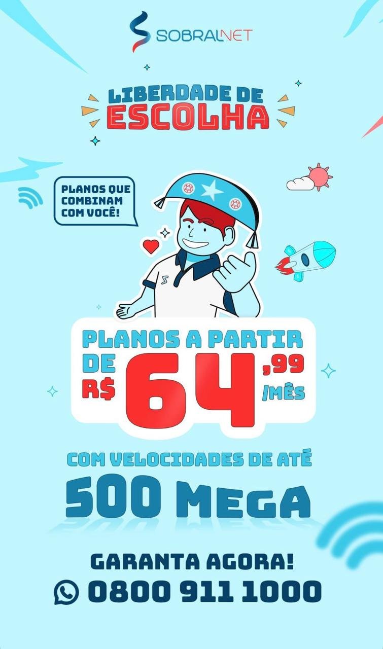 Liberdade de Escolha Planos a partir de R$ 64, 99 Mes com velocidade até 500 MEGA