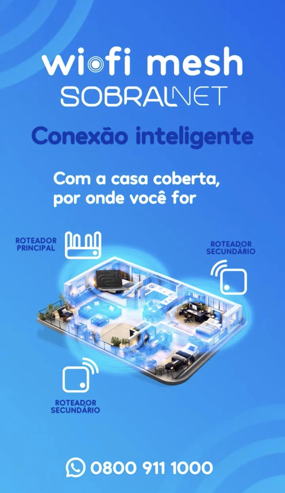 Wi-Fi Mesh da SobralNet conexão inteligente com a casa coberta por onde você for.