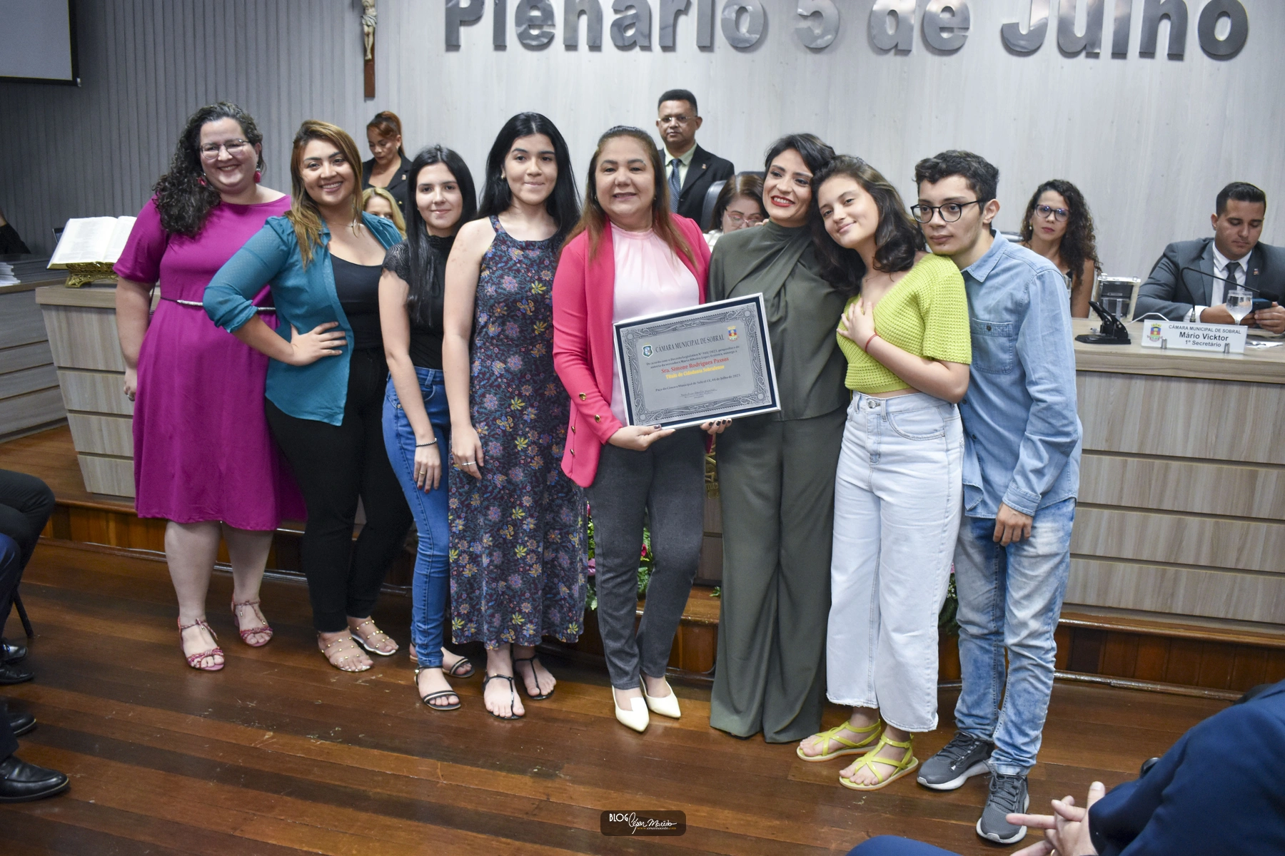 A gerente geral do Sobral Shopping MárciaOliveira (Homenageada), com a presença de seu esposo Geubes Gomes, sua filha Júlia, a engenheira Karisa Marques com seu esposo Dr. Gilson Fontenele e o filho Vinícius, a coordenadora comercial Leyciane Midas e alguns colaboradores do Sobral Shopping.